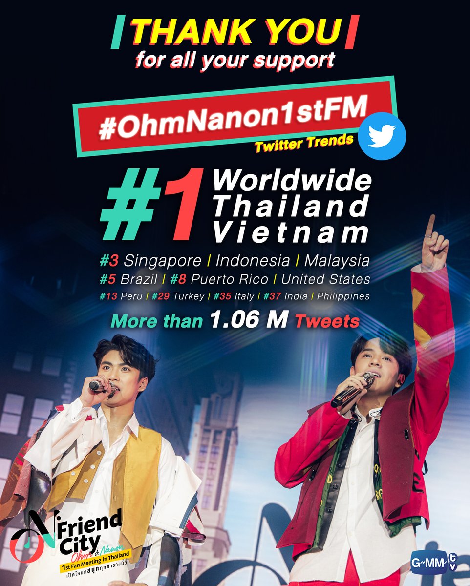 ทำให้ติด Twitter Trends อันดับ 1 Worldwide,Thailand และ Vietnam รวมติดเทรนด์ทั่วโลกถึง 13 ประเทศ และมียอด Tweet กว่า 1.06 ล้าน