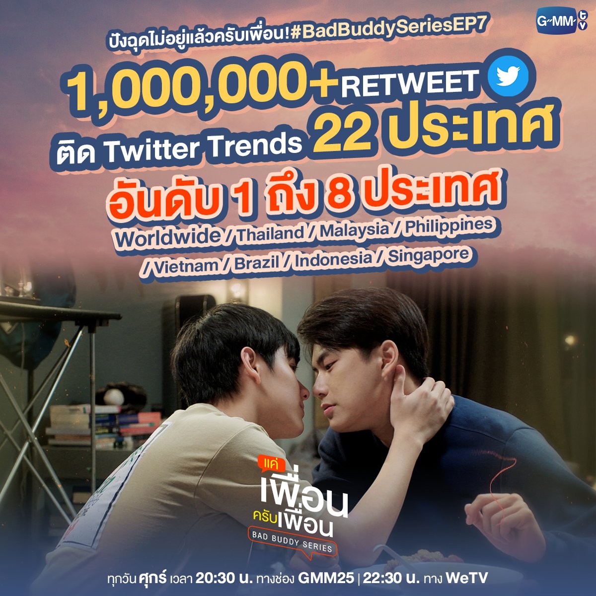 ทุกวันศุกร์ เวลา 20:30 น. ทางช่อง GMM25 | 22:30 น. ทาง WeTV