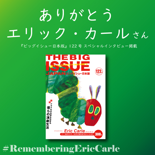 多くの子どもたちに愛される絵本『はらぺこあおむし』などで知られる絵本作家エリック・カールさんが、5月23日に亡くなりました。『ビッグイシュー日本版』122号(完売)では、愛らしい青虫の表紙と、スペシャルインタビューにご登場いただきました。ご冥福をお祈りいたします。