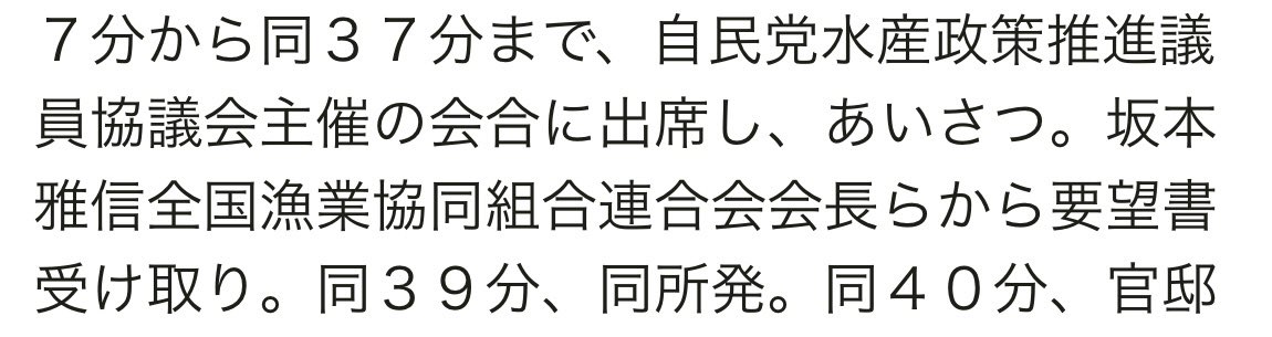 「自民党水産政策推進議員協議会主催の会合」とあり、全国の水産関係者との会合であり、→ twitter.com/nikkan_toyosu/…