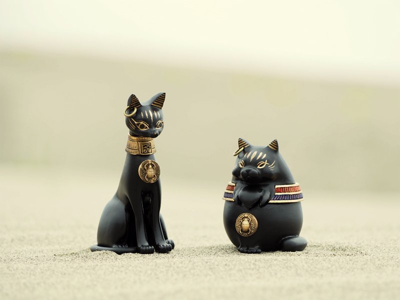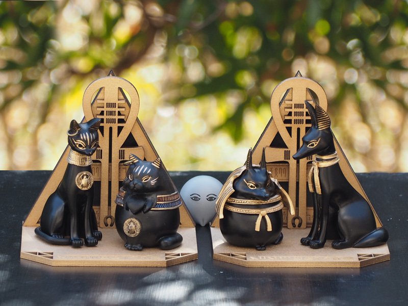 エジプト神、狐、猫のモチーフが中心の造形を制作しています。