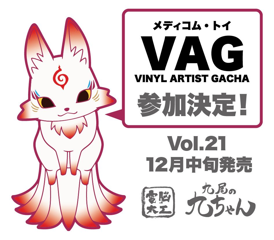 メディコム・トイ様から VAG(VINYL ARTIST GACHA)SERIES21として九尾の九ちゃんがラインナップされました!VAG用に小さくディフォルメし直してあります。詳細は以下の記事にて!