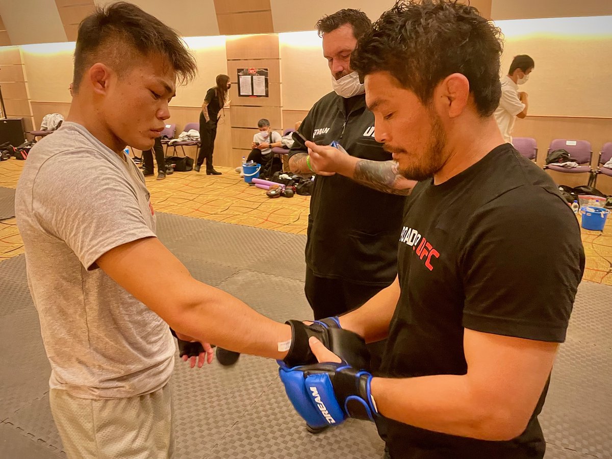 石渡戦で右拳を怪我しまだ完治してないんで(だから大沢ケンジさんとのコラボでも右せなかったんです)井上直樹選手、今回は右はほとんど出せないからと蹴り多用のゲームプランになったんです。けど金太郎選手も頑丈でした👍 #RIZIN30