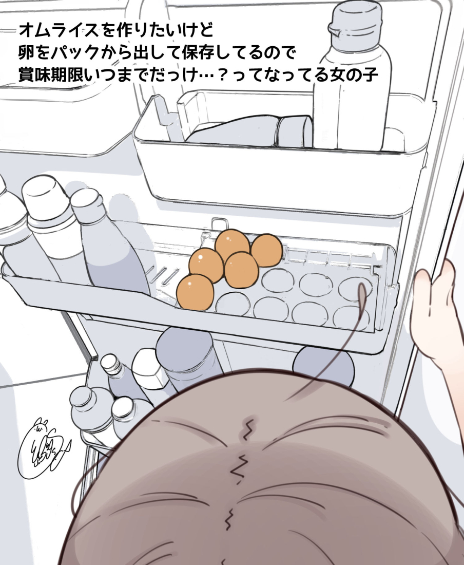 オムライス作ろうかなと、冷蔵庫の中身を確認する女の子