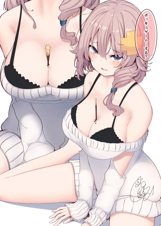 からかってくるタイプの先輩ちゃんとポッキーゲーム 前に上げたのを塗り方変えてみたバージョン