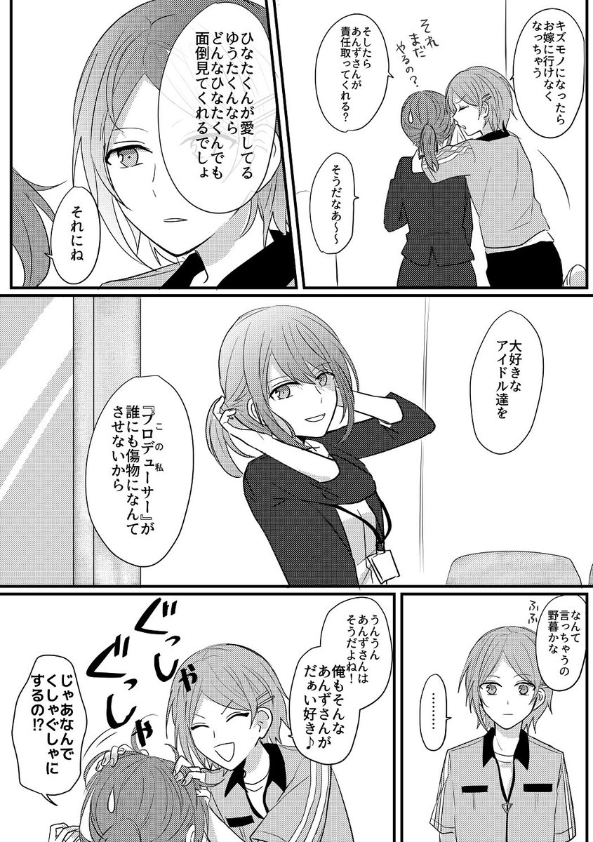 リズリン事務所でラビと打ち合わせしててしののの手が自分より大きいことに衝撃を受け「仁兎先輩は私と同じくらいですよね!?」「おれが一番歳上だぞ!💢」て皆と掌を合わせて比べっこをしはじめたあんずさんのことなんて視界に入ってないフリしながらこっそり手汗を拭う羽風