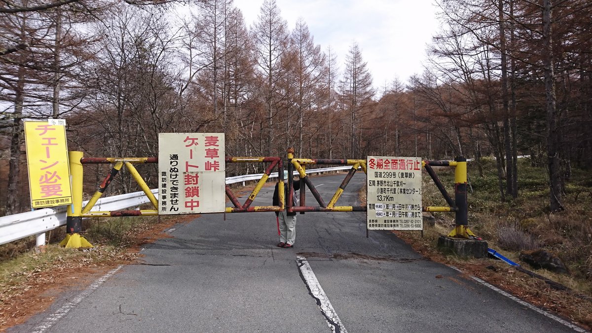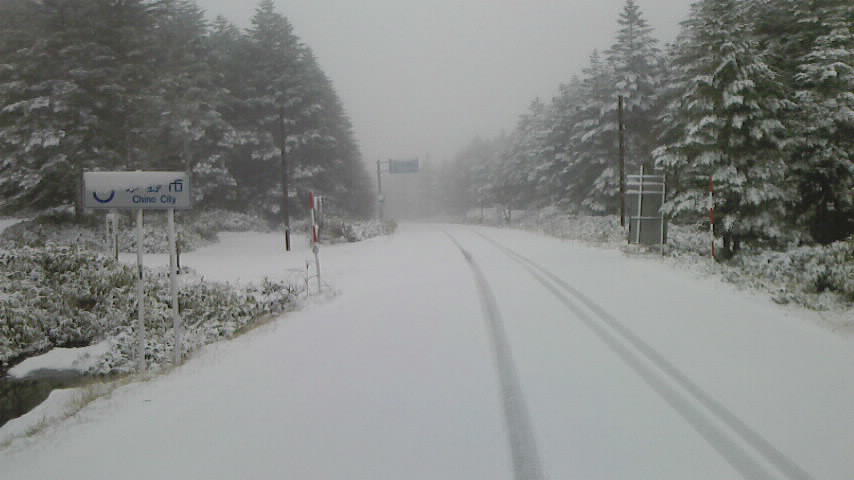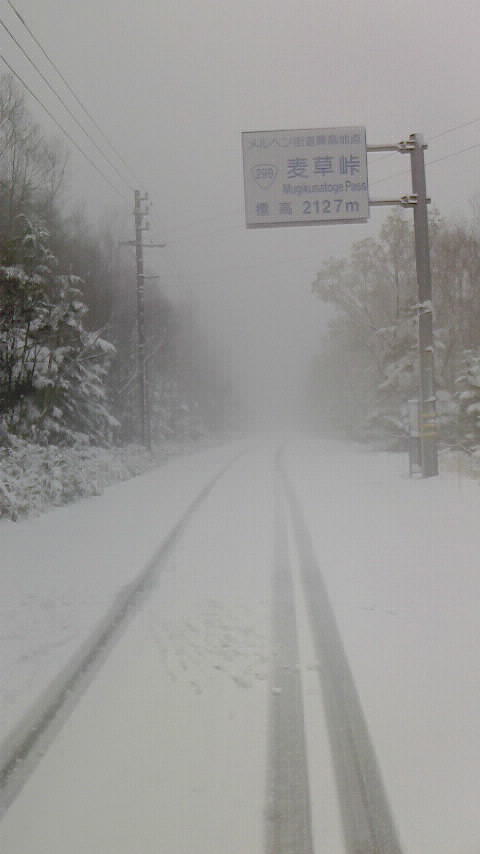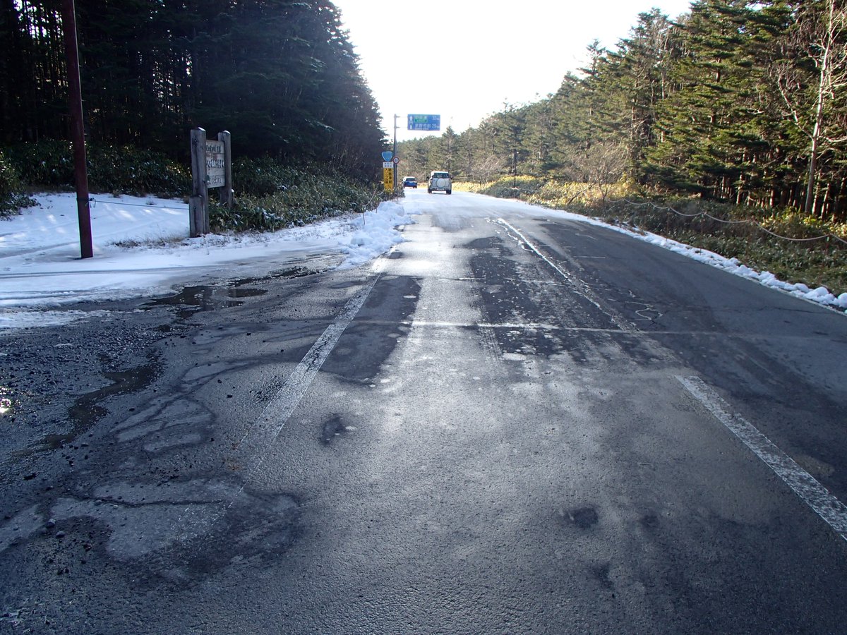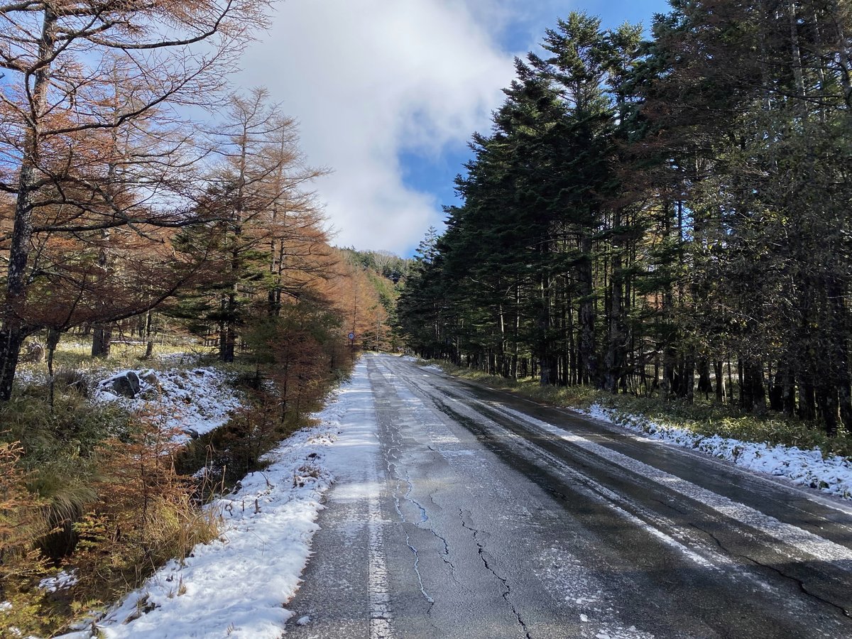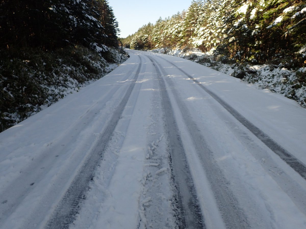 【お知らせ】現在、国道299号、麦草峠頂上付近の路面に約2cm程度の積雪があり、明日の朝にかけて凍結の恐れがあります。ノーマルタイヤでの通行は危険ですので、ご注意ください。