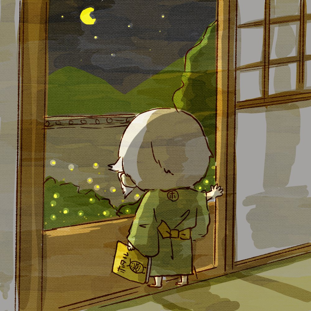 寝てたとおもてたら、庭にいる蛍眺めて…どないしたん。