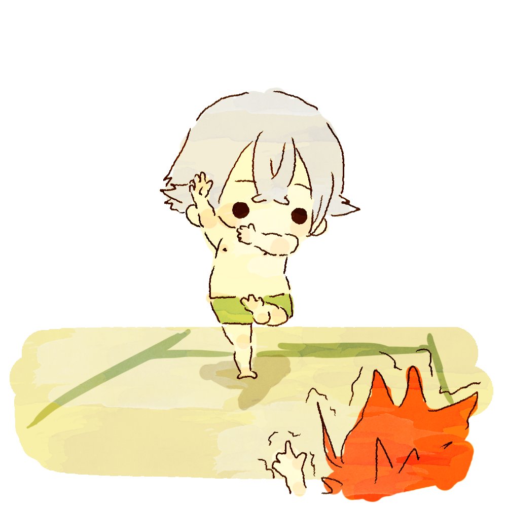 でも、着替え中だから下はパンツだよ。驚いた?あ、お供かわいく撮れた。鳴狐🐾