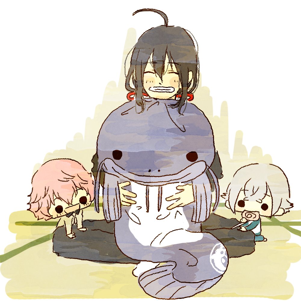 この本丸では毎週誉賞って言うのがあってね。先週の誉賞の鯰尾が念願の巨大巨大人形貰って喜んでる。家紋入りなんだってさ。加州