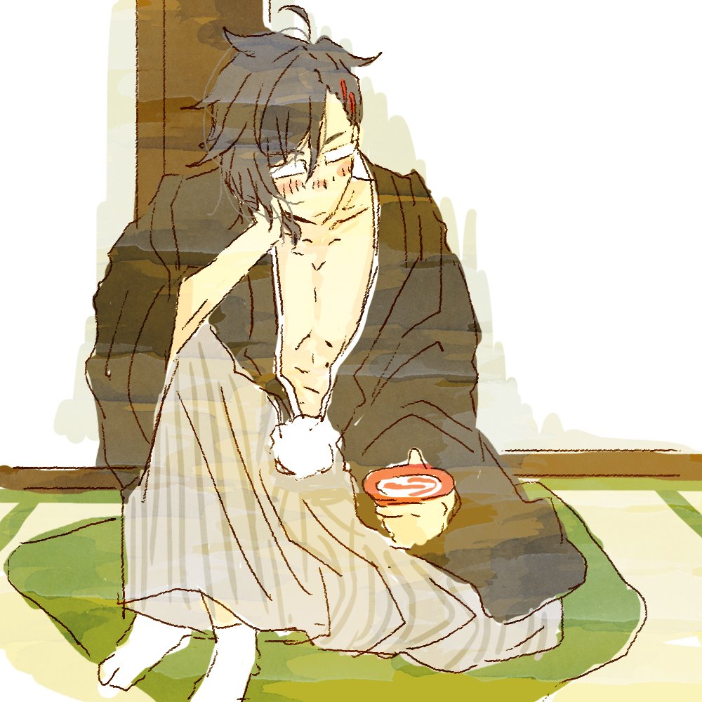 明石くんはどうも袴が嫌いみたいで...日中はまだかっこよく着こなしてたんだけど、酔っ払ってるせいでもう着崩れっぱなしなんだよ( 川 Д`)うーんもう少ししたらもっとひどくなりそうだね!光忠