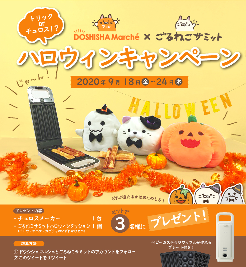 「チュロスメーカー」と「ごろねこサミット ハロウィンver」をセットで3名様に #プレゼント します!