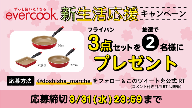 「evercook フライパン 26cm、22cm、卵焼き用」の3枚をセットにして2名様に #プレゼント 🍳