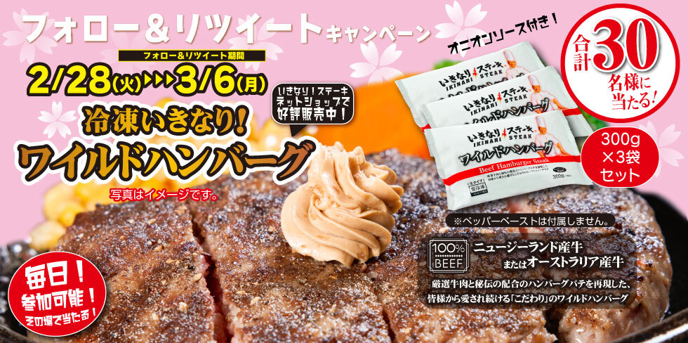【冷凍ワイルドハンバーグ300g3袋セット】が合計30名様に当たる🎁✨