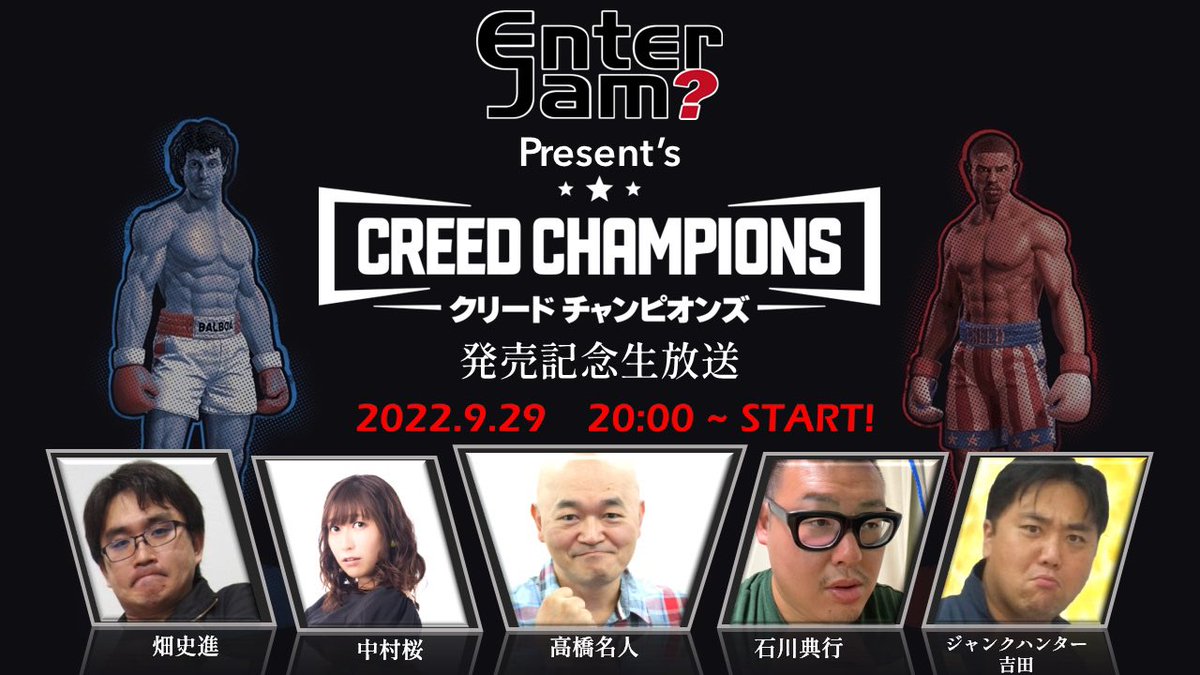 9月29日(木)20:00~実施!! 「 エンタジャムプレゼンツ『クリード チャンピオンズ』発売記念生放送」