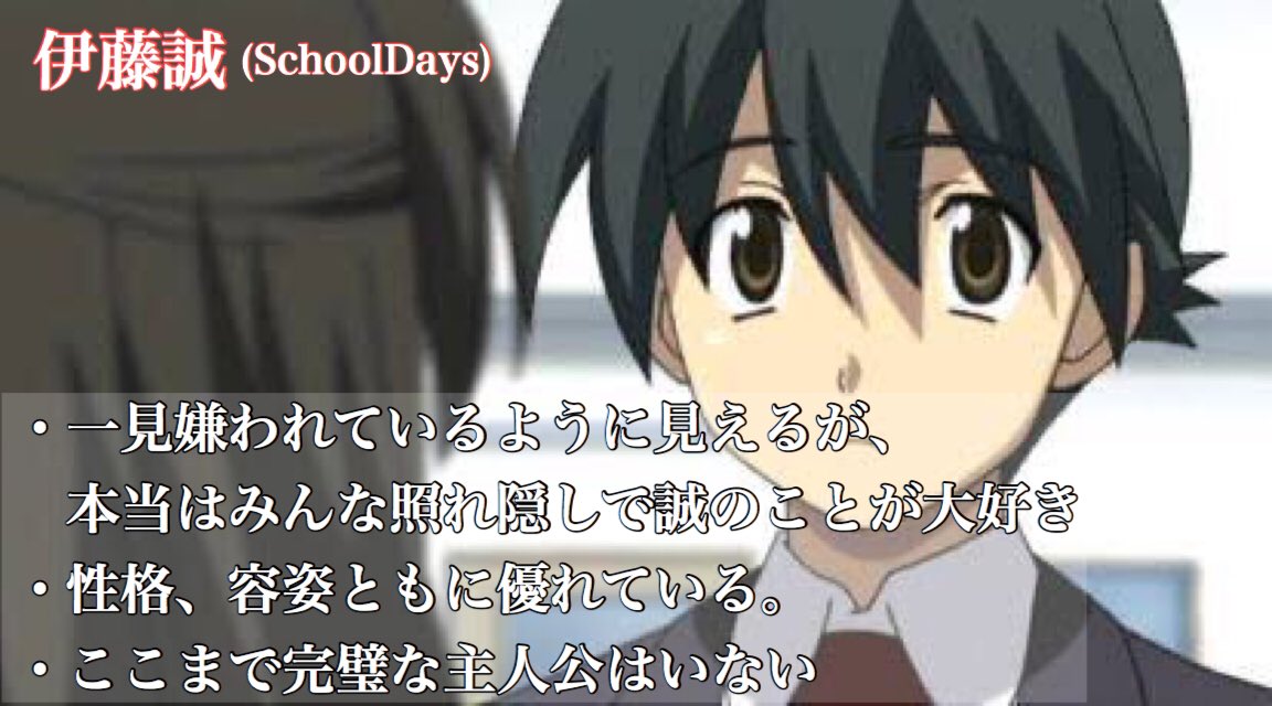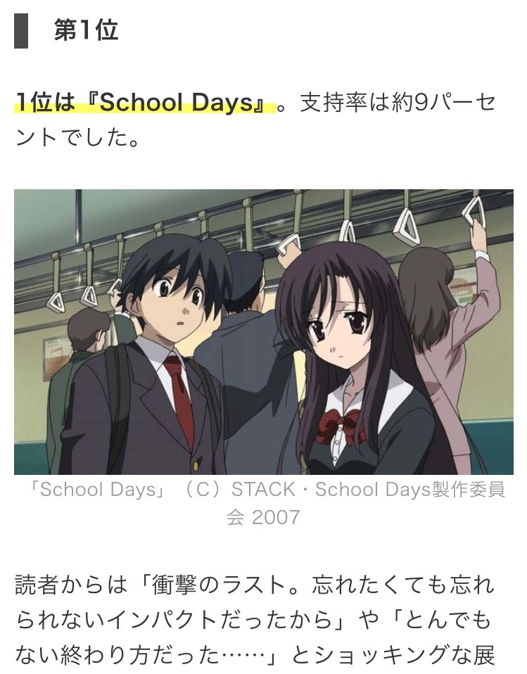夢と希望の学園アニメ特集でSchoolDaysが紹介されてるよ