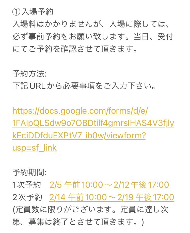 ご来場いただく皆様に事前にフォーム(docs.google.com/forms/d/1MDwP6…)からお申し込みをお願いしております。なおご予約は、【お一人様ごと】に申し込みをお願いいたします。