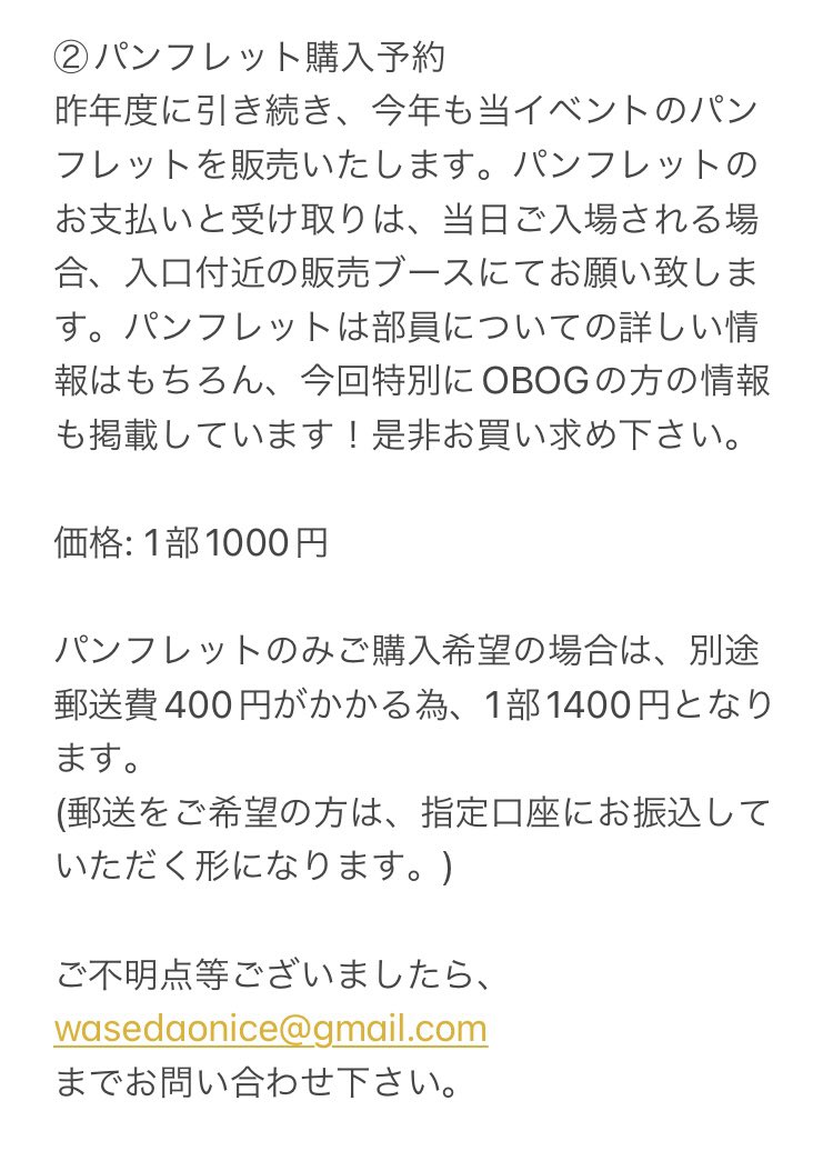 当日の入場にあたり、ご入場いただく皆様に事前の申し込みをお願いしております。また、パンフレットご購入の申し込み方法について記載致しました。ご確認の程宜しくお願い致します🙏