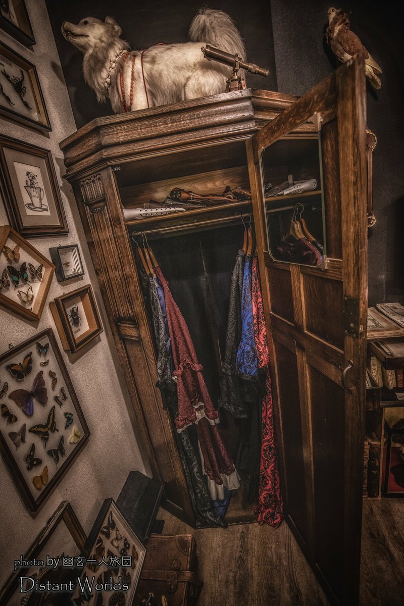「隠し通路」とか「隠し部屋」てのは人類のロマンだと信じてやまないわけですが。このシュレディンガーの猫という雑貨屋の店内隅にある洋服棚。この先は会員制(or県外来訪客)のみ入れるカフェに続く隠し通路に…。