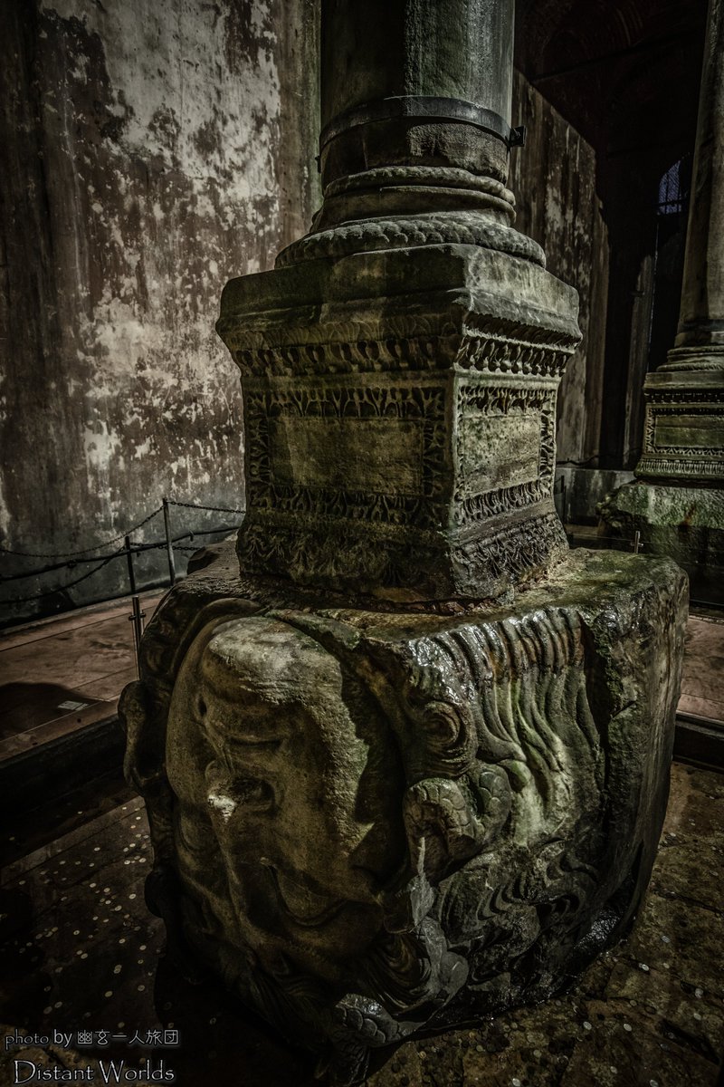 「このイスタンブール地下神殿のメデューサの頭には、何か伝説や由来はあるのですか?横向きだったり、逆さだったりしてますが。」🤔