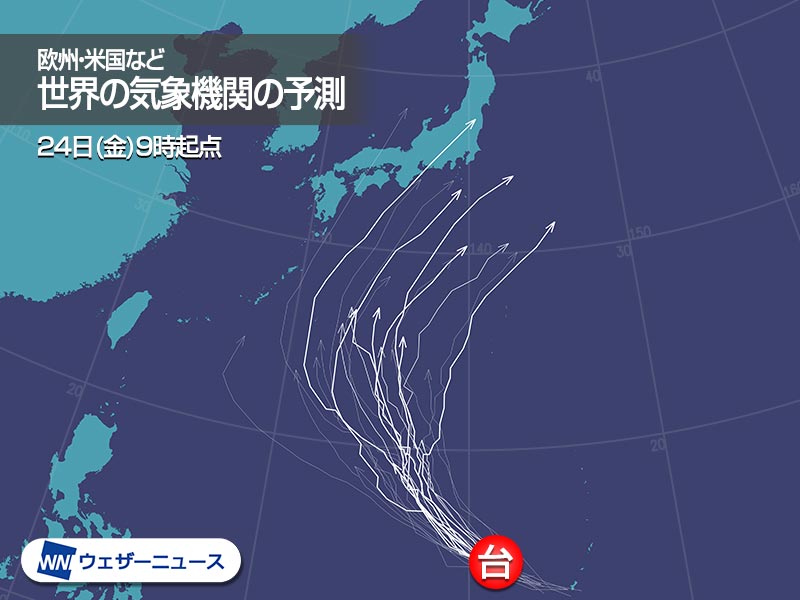 大型で非常に強い台風16号は日本の南の海上を北上中。今後は北東に進路を変えて10月1日(金)に伊豆諸島近海を通過する見込みです。暴風雨による災害の発生に厳重な警戒を。