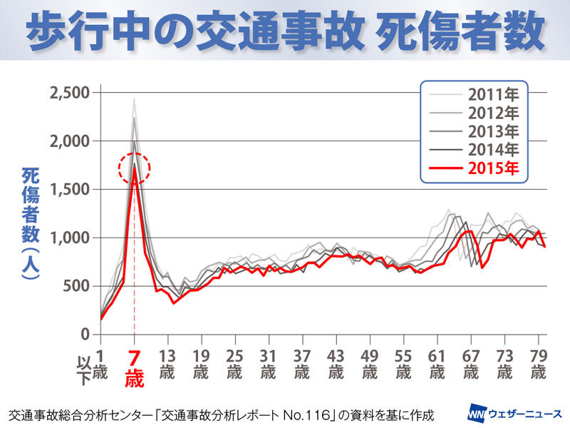 警視庁等のデータを読み解くと、交通事故の発生状況は、「小学1年生~2年生で、通学に慣れてくる5月~6月の下校時間」が最も多くなっています。