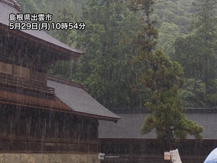 本降りの雨になることがあり、特に北陸や山陰では大雨となるおそれがあります。道路冠水や河川の増水、土砂災害などに注意してください。