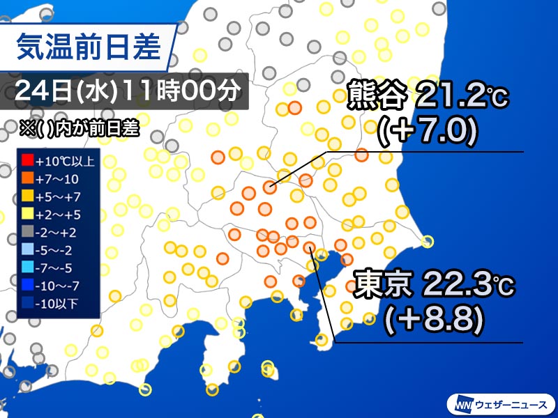 【関東 昨日より大幅に気温上昇】