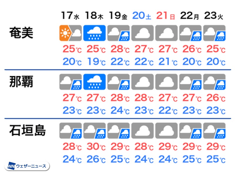・沖縄や奄美は梅雨入り間近