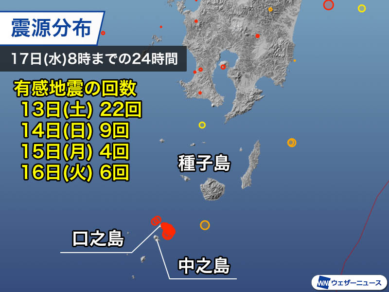 奄美地方のトカラ列島近海や、伊豆諸島の八丈島近海の地震活動は、先週末から活発な状況が続いています。今度の動向には引き続き注意が必要です。