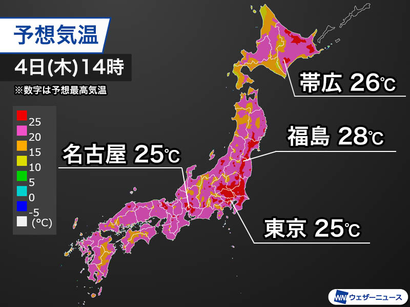 ・各地で気温高め 北日本でも25℃前後