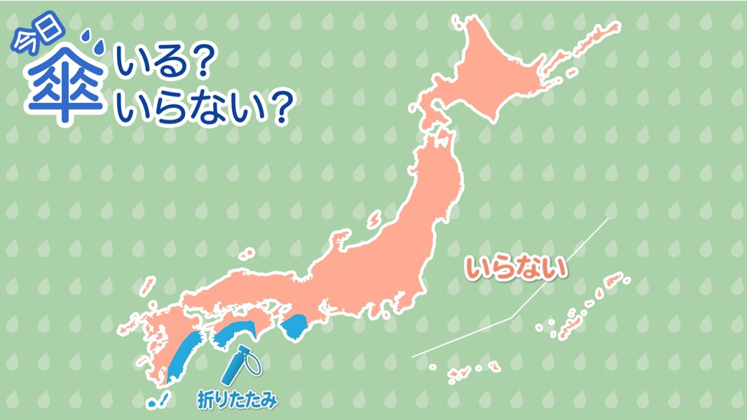 そのほかの各地は高気圧に覆われて晴れるため、傘の出番はありません。