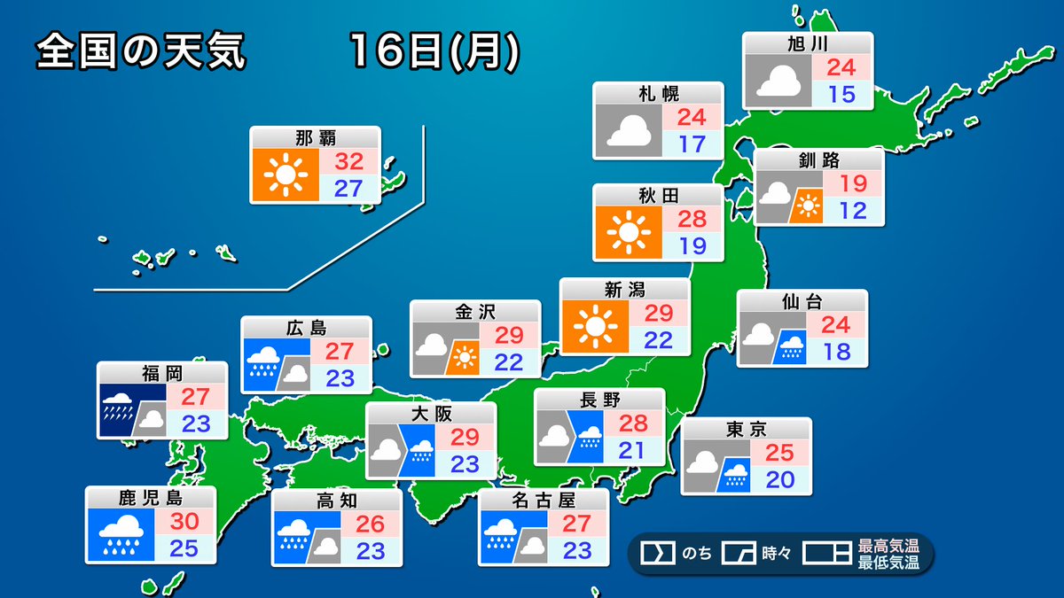 週の始まりとなる今日16日(月)は西日本は雨の降るところが多く、九州を中心に再び大雨のおそれがあります。被害の拡大や新たな災害の発生に厳重な警戒が必要です。