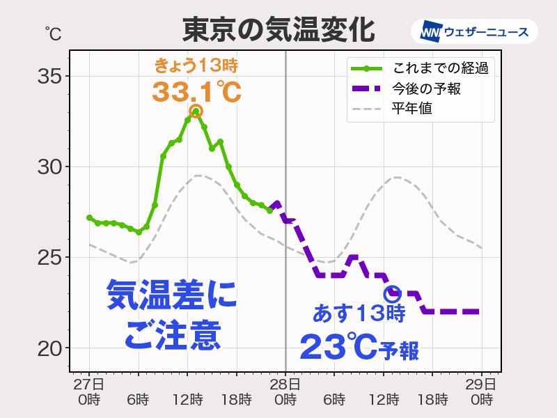 <今日の東京は猛暑日予想>