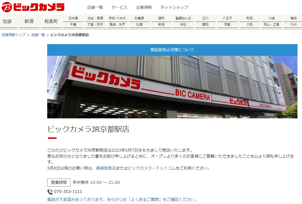 あれまあ。京都駅のビックカメラ、撤退なのか