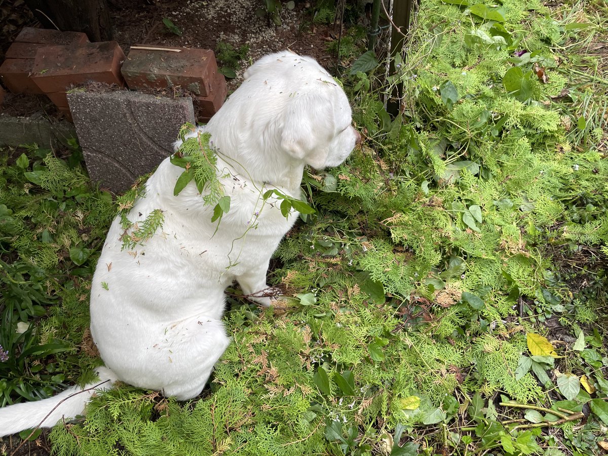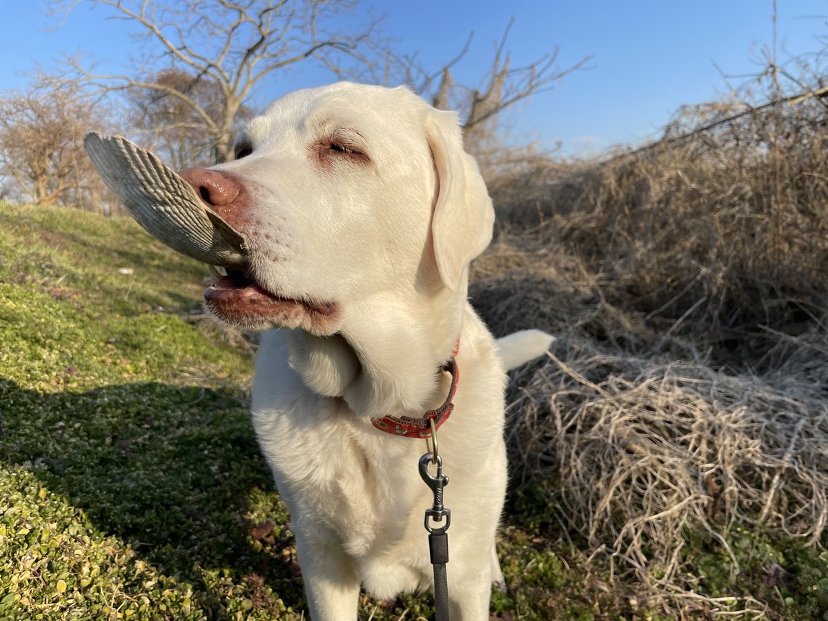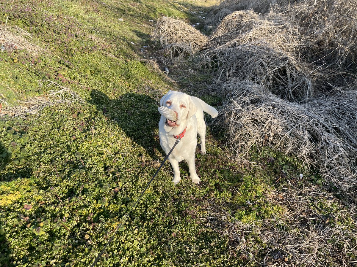 トトのことを放置して夢中でホトケノザの写真を撮っていたら、『カラン…』と聞き慣れない硬質な音がした。振り返ったら、トトさんが尻尾をブンブン振りながら「ととは こんなに わるいを している!」とホタテの殻を持ってアピールしていた。わるいっ!わるいらぶらどだな〜!