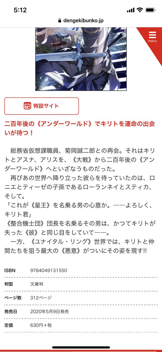 SAO アリシゼーション編 原作 最終ページ