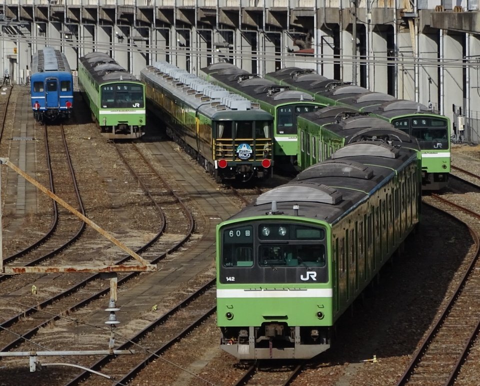 和田岬線103系は兵庫駅滞泊なので、駅付近からMG搭載車両のパンタ下げを見ることが可能。