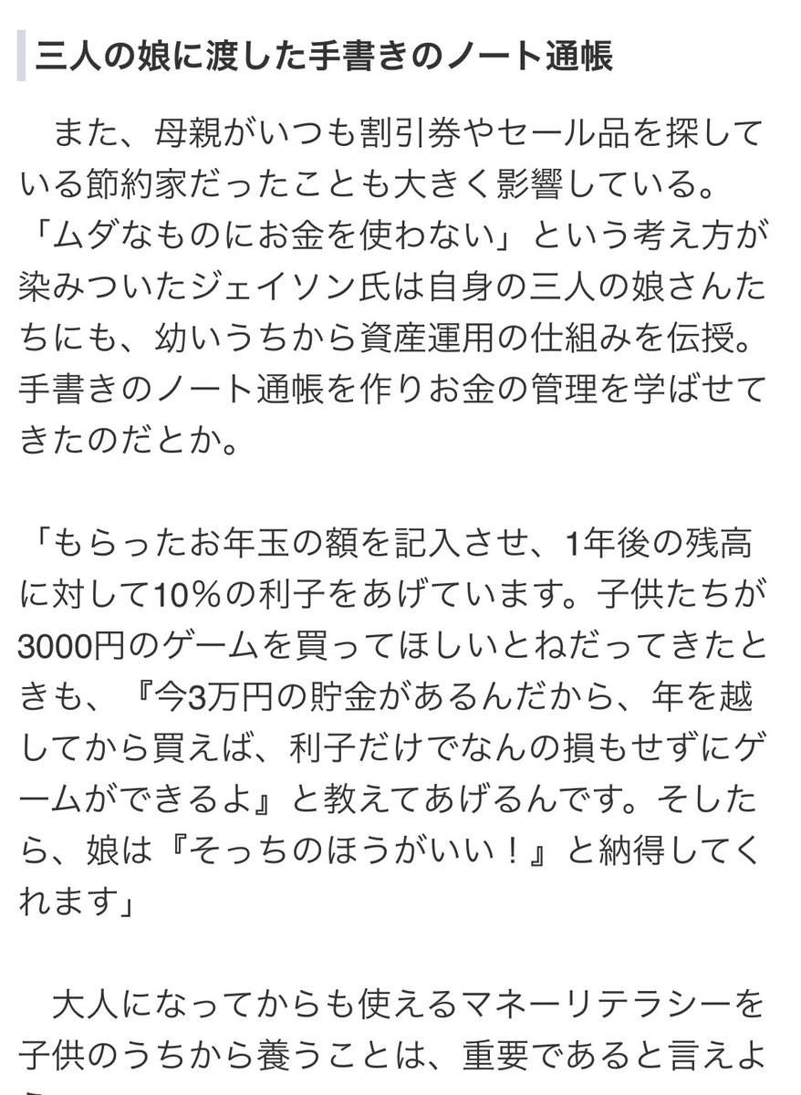 厚切りジェイソンの子供のマネー教育凄くいい。お金は物を買うだけのものじゃないことを子供のうちから楽しく学ばせてるのさすが。