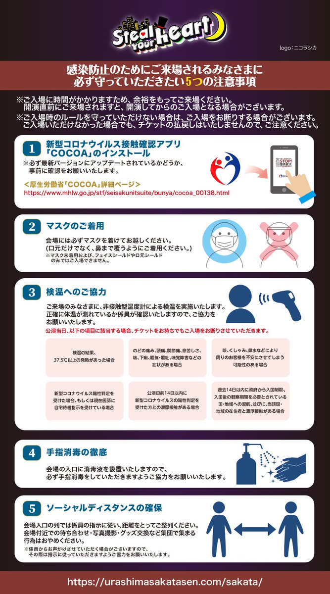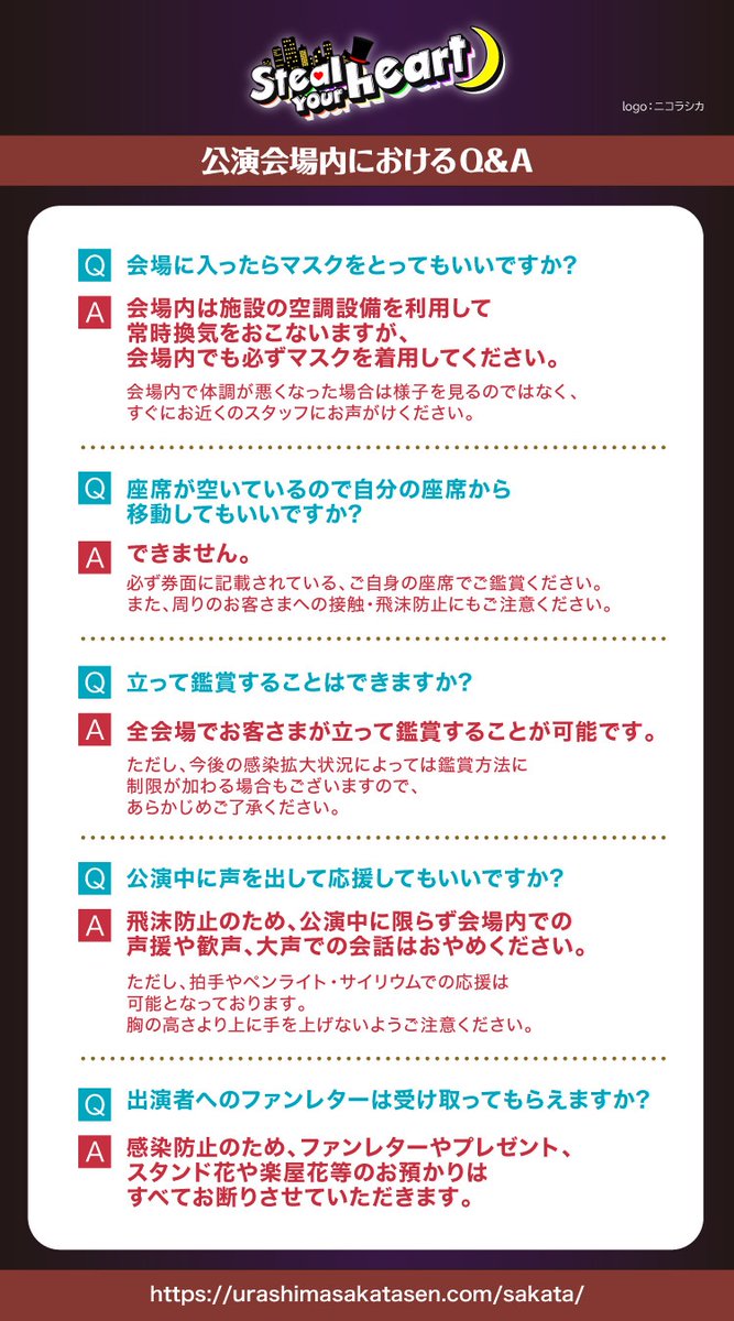 安全に公演をお楽しみいただくために、会場にお越しになる前に必ずお読みください。みなさまのご協力よろしくお願いいたします。