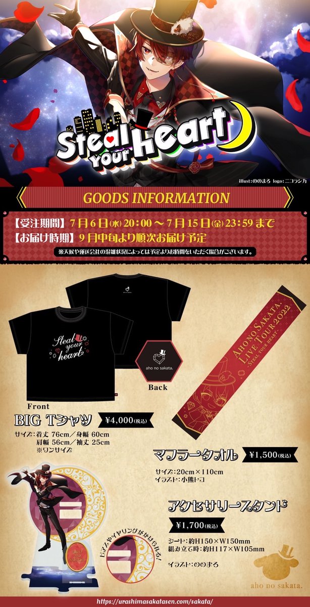 "AHO NO SAKATA LIVE TOUR 2022 -Steal your heart-" Official merchandise online shopping will be closed soon!