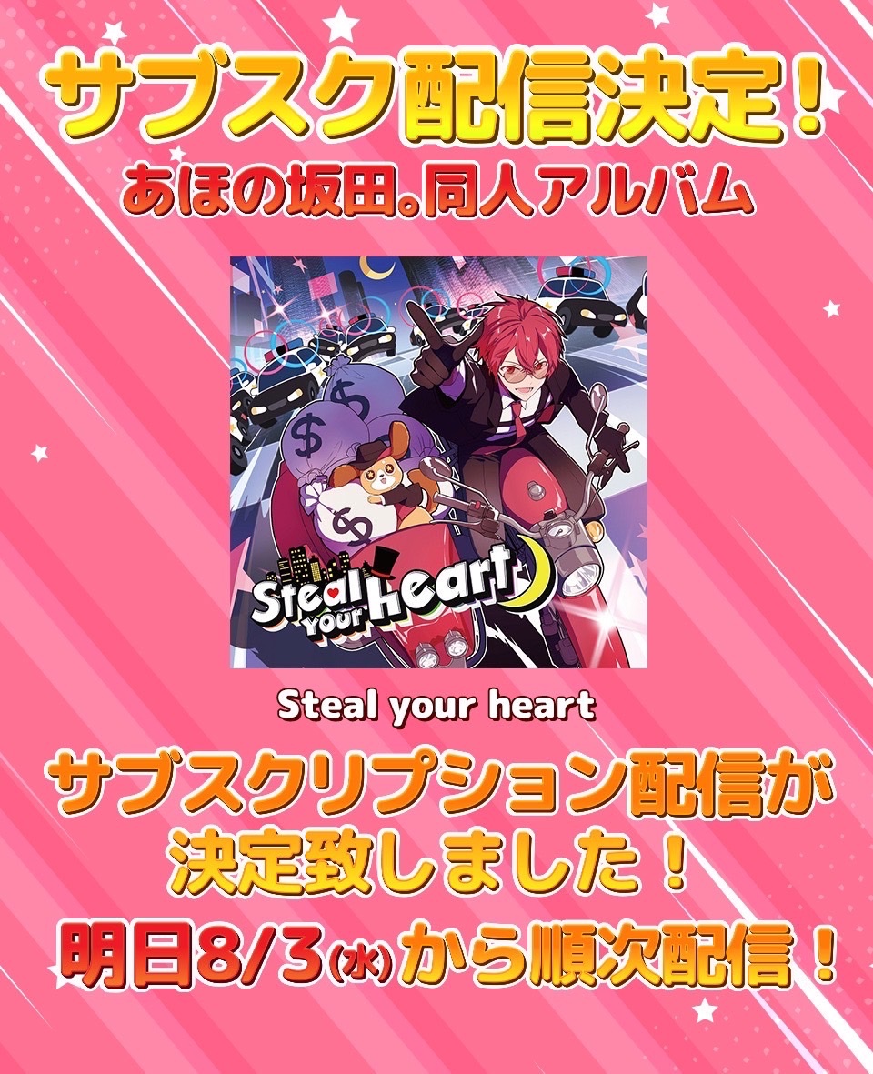 坂田同人アルバム『Steal your heart』サブスクリプション配信が決定しました!