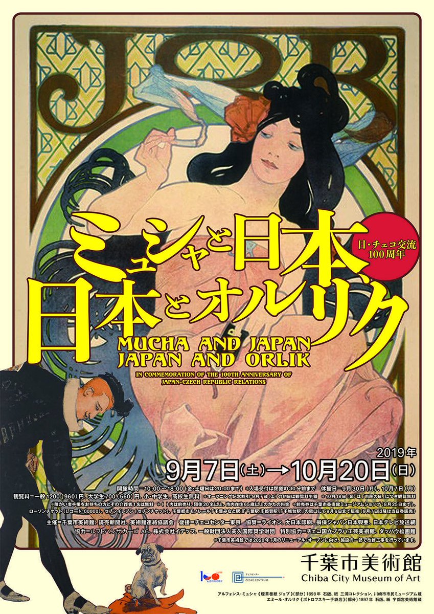 9/7〜10/20に開催する次回展「ミュシャと日本、日本とオルリク」の情報をHPにて公開しました。今なお大人気のミュシャと、日本の浮世絵から影響を受けたエミール・オルリクとともに、1900年前後の日本とチェコ、そしてジャポニスムについて紹介する日本で初めての展覧会です。ccma-net.jp/exhibition_end…