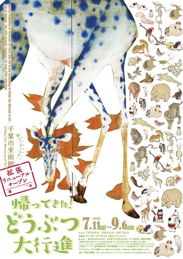7/11-9/6に開催する企画展「帰ってきた!どうぶつ大行進」の詳細を公開しました。2012年に大人気だった「どうぶつ大行進」展がバージョンアップしてカムバック!今こそ見たい麒麟など霊獣の姿や疫病破邪の生き物表現を含む約230点の古今の多彩な動物イメージをご堪能ください。ccma-net.jp/exhibition_end…