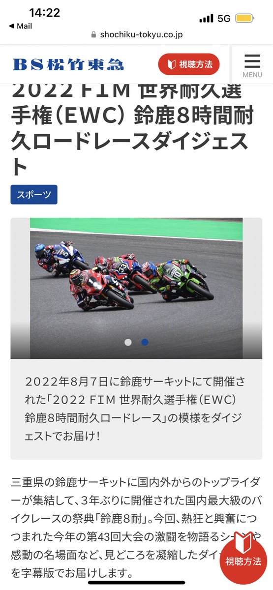 BS松竹東急(BS260ch)12月4日(日)の午後3時から「鈴鹿8耐」のダイジェストを放送 ❗️全国無料放送