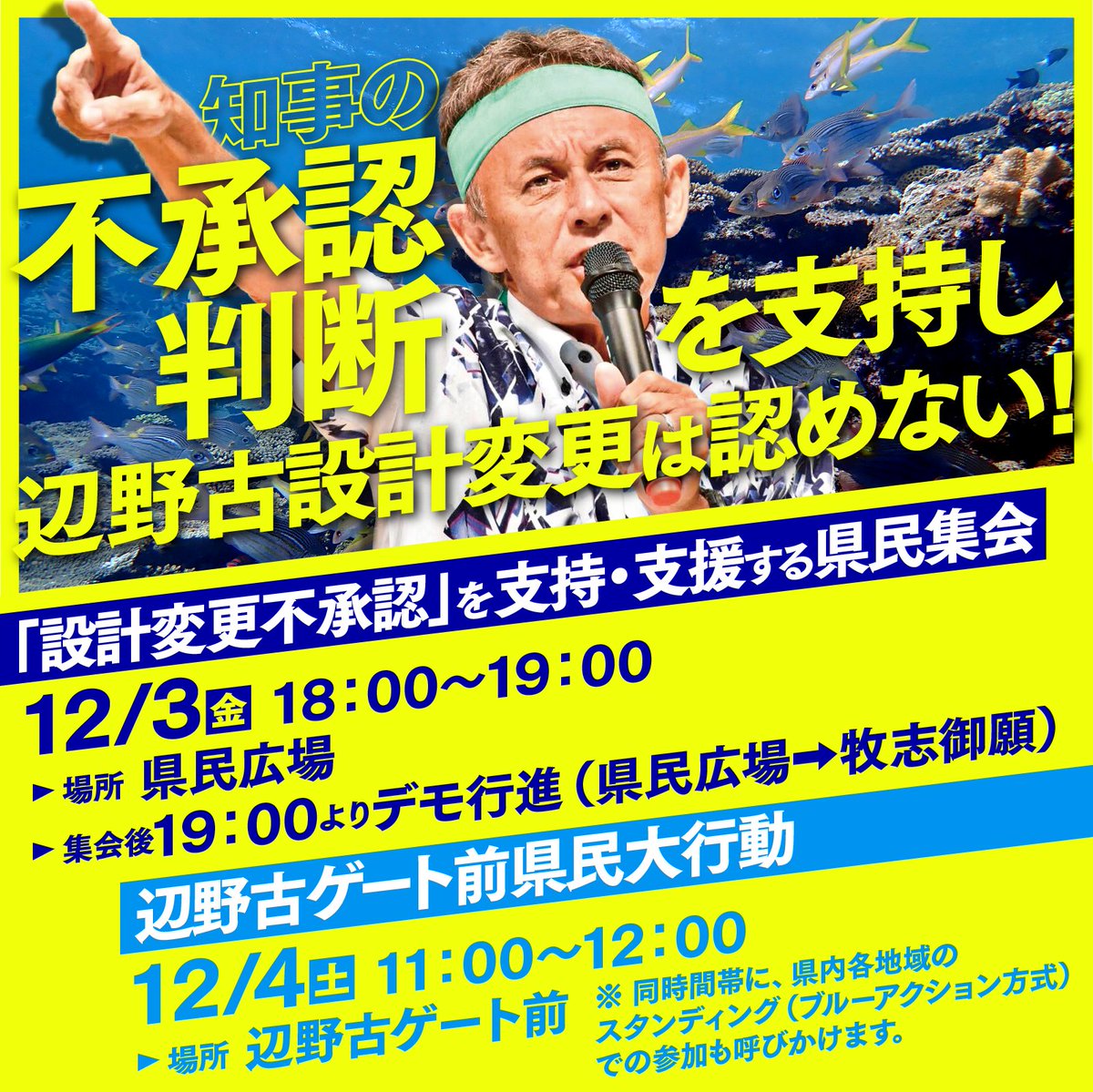 玉城デニー知事宛に「変更承認申請書」の問題点を「意見書」で指摘し、辺野古新基地建設に反対する圧倒的な声を県内・全国から届けましょう!