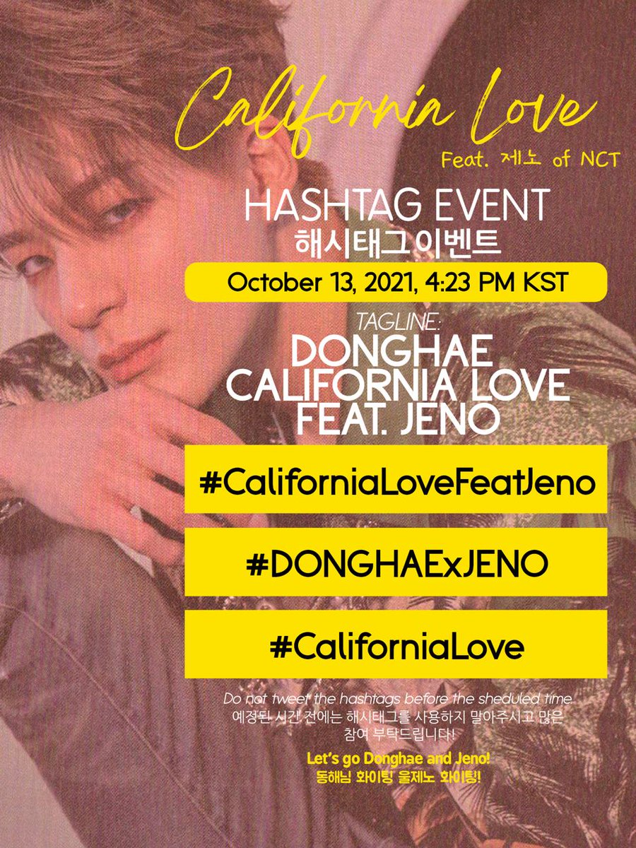 Super Junior Donghae's new song "California Love" featuring #JENO will be released on Oct. 13!