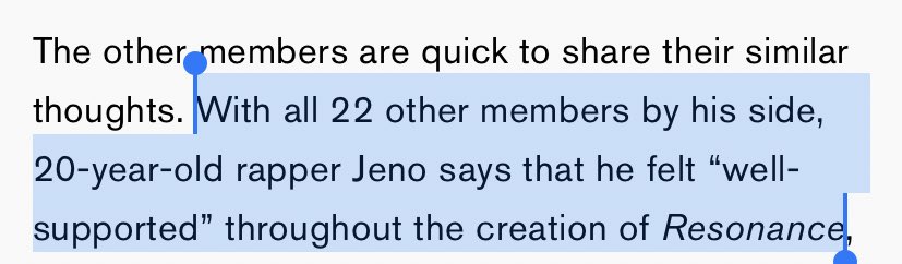 "With all 22 other members by his side, 20-year-old rapper Jeno says that he felt “well-supported” throughout the creation of Resonance"
