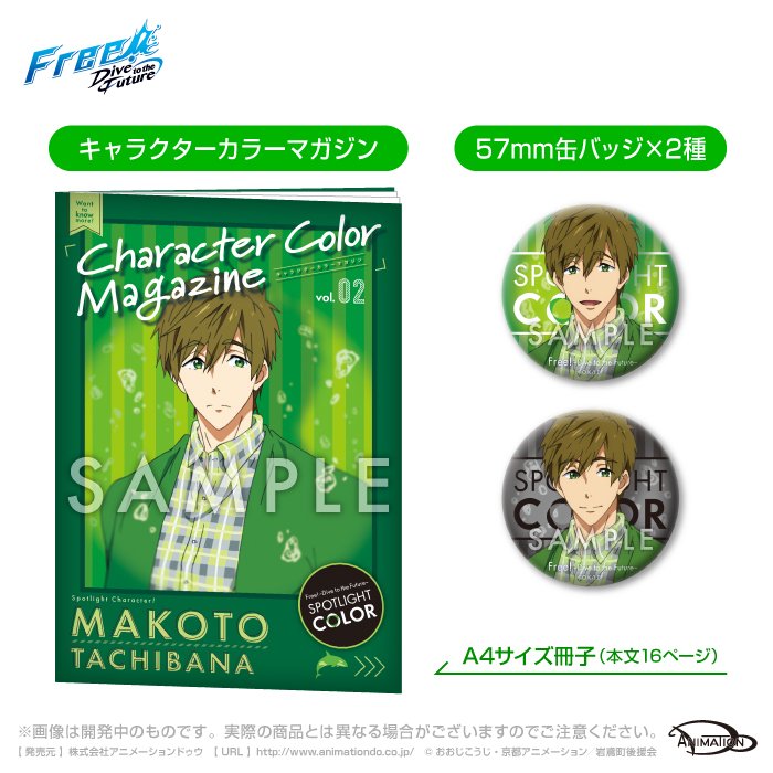 真琴のことにスポットライトを当てた16ページの冊子「キャラクターカラーマガジン」と、2パターンの表情を切り取った「57mm缶バッジ(2個)」をセットにしてお届けします。今まで知らなかった一面が見つかるかも?!