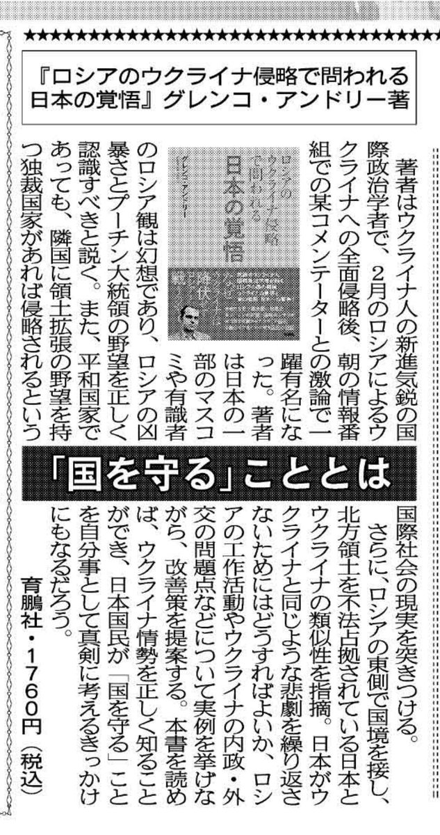 グレンコ アンドリー(新刊『ロシアのウクライナ侵略で問われる日本の覚悟』発売中)